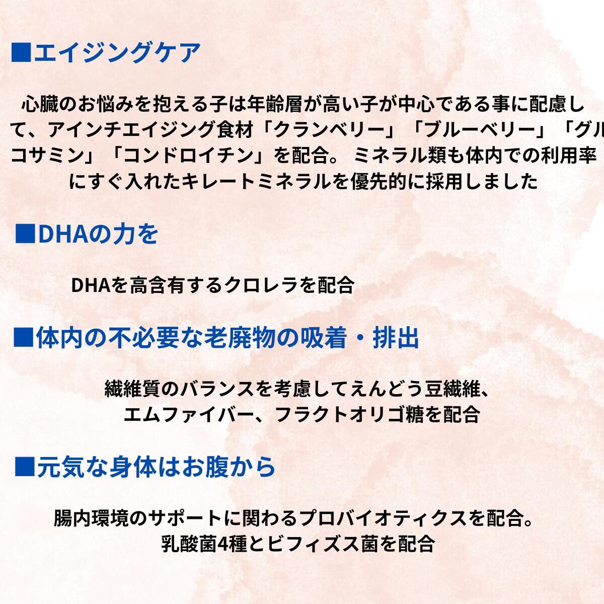 ※フード・おやつは健康をサポートするものであり、効果や効能を保証するものではありません。効果には個体差があります。