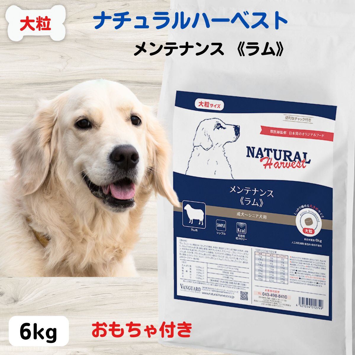 ドッグフード 大型犬 大型犬 シニア ドッグフード ナチュラルハーベスト ラム NATURAL Harvest ベーシックフォーミュラ メンテナンス大粒 6kg×1袋 成犬 高齢犬 グルコサミン コンドロイチン 11201-4-h