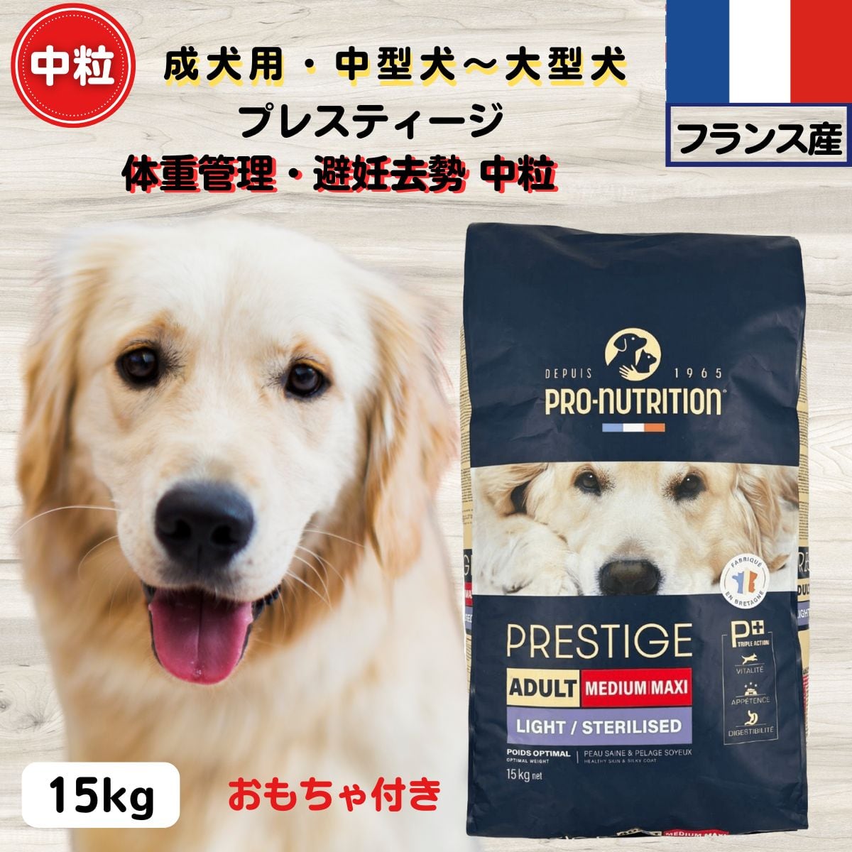 10%OFFクーポン ドッグフード 無添加 プレスティージ 体重管理・避妊去勢 15kg 中粒 フランス産 成犬用 中型犬?大型犬用ドッグフード 無添加 3269878441507