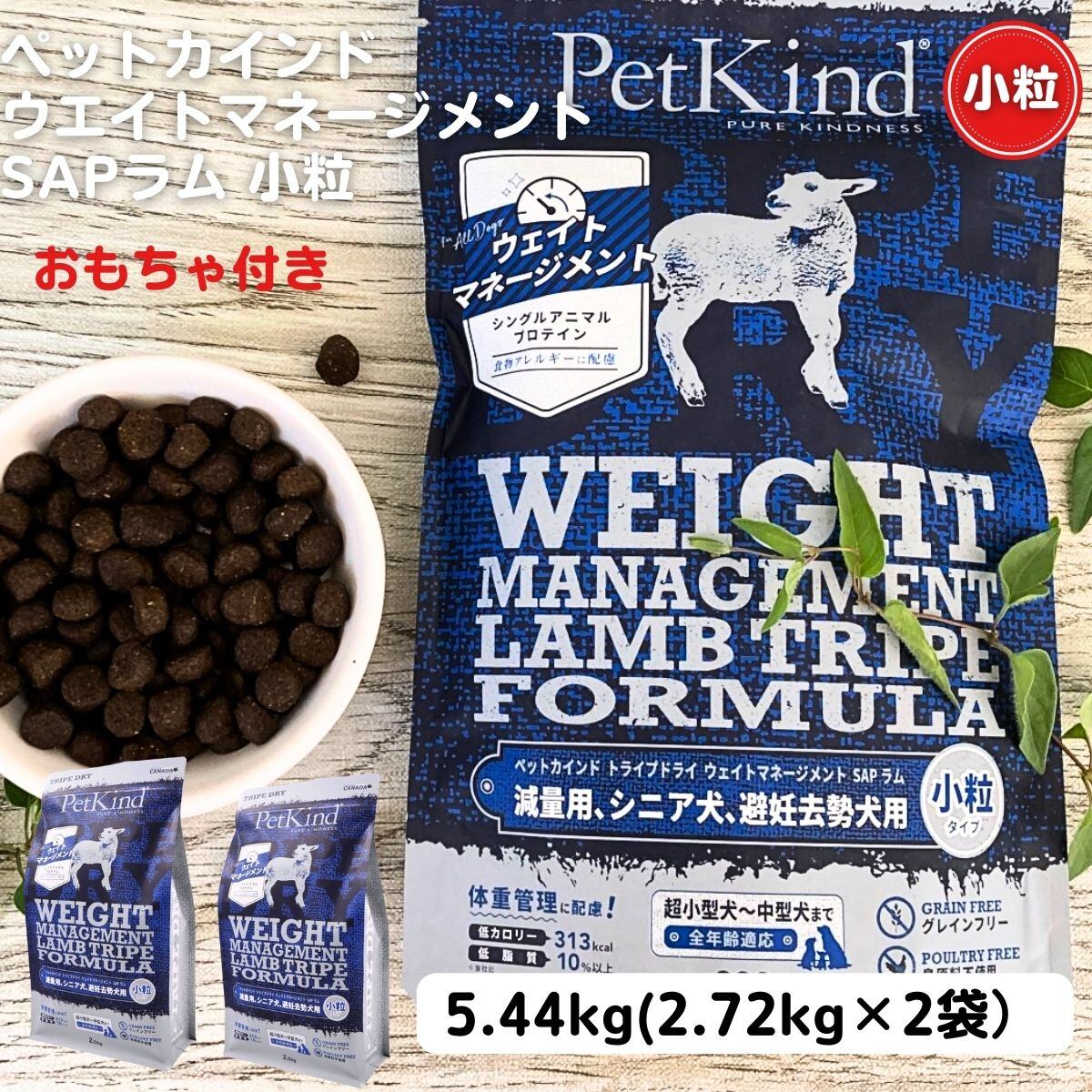 ペットカインド 小粒 ドッグフード 無添加 ペットカインド ウエイトマネージメント SAP ラムトライプ 小粒 2.72kg×2袋 ダイエット シニア 避妊去勢用 ごく小型犬から中型犬 犬 ドッグフード 安全 安心 PetKind 4571378735079-2