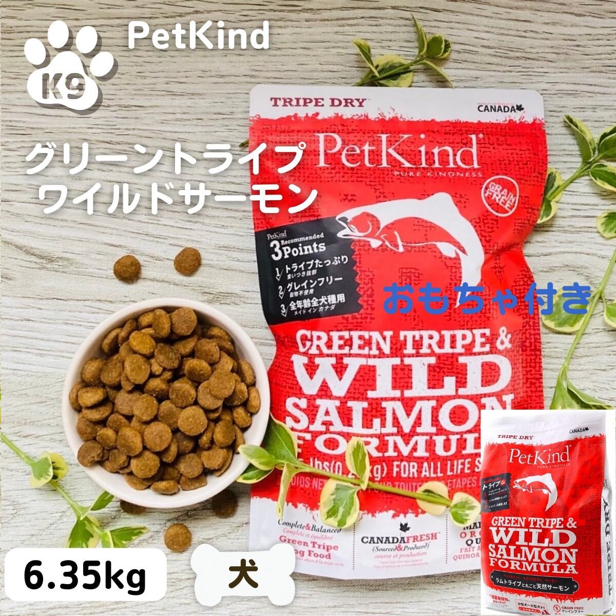 ペットカインド サーモン ドッグフード 無添加 ペットカインド トライプドライ グリーントライプ&ワイルドサーモン 6.35kg 送料無料 PetKind ドッグフード 犬 JAN:0882978701000 882978701000