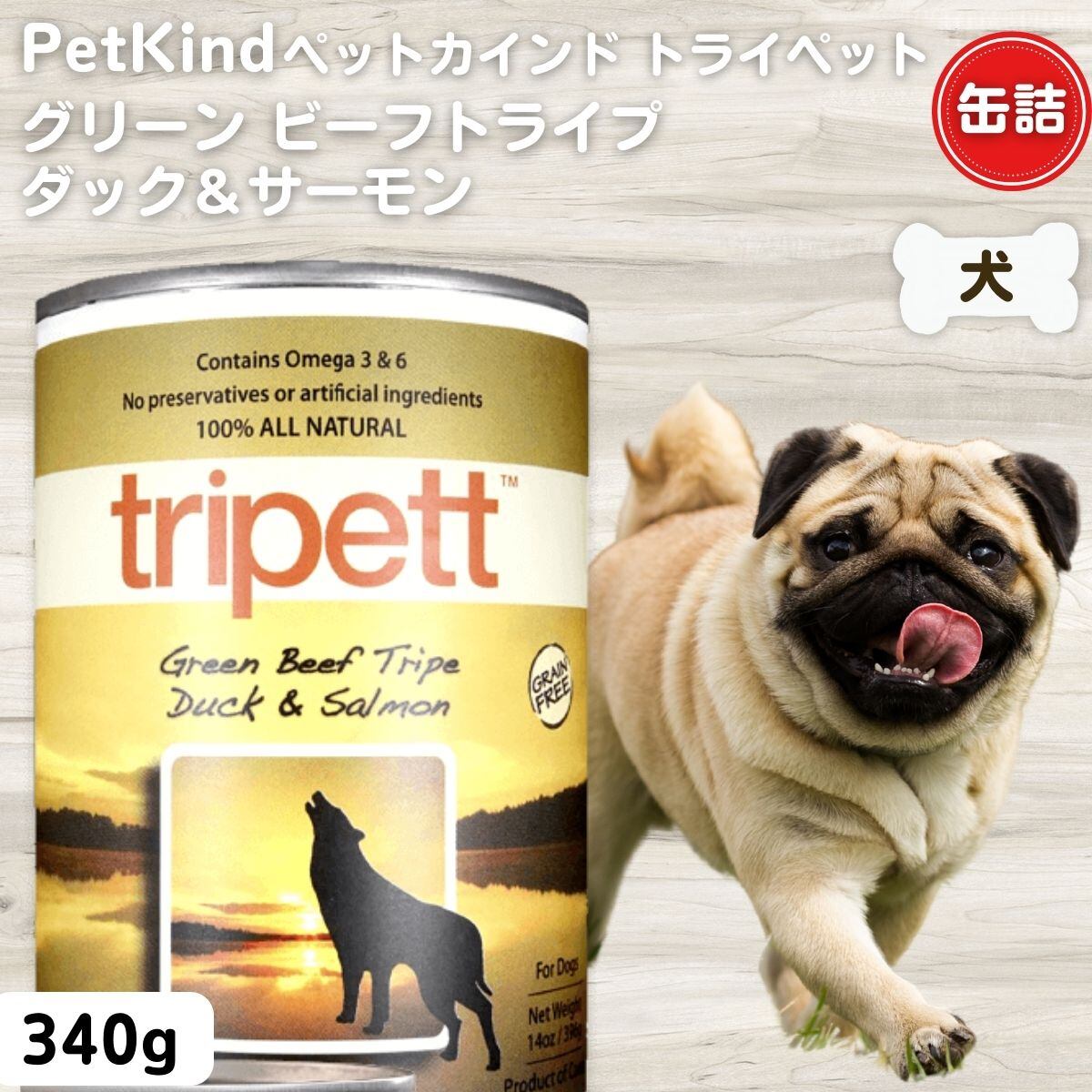 犬 缶詰 無添加 ペットカインド トライペット グリーンビーフトライプ ダック&サーモン 340g 832701000115__3