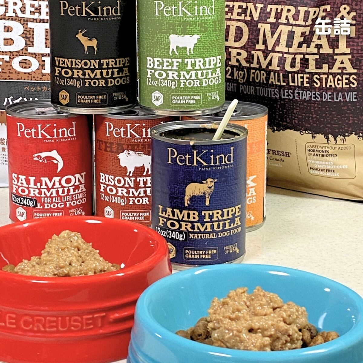 愛犬&飼い主様にオススメ!・愛犬の健康のために、安心で安全な無添加を。合成保存料や人工香料・着色料は一切使用せず、自然由来の添加物しか使用していません。・グリーントライプの70%は7つのアミノ酸で構成されているので、非常に良いバランスの理想的な主原料です。・ペットカインドで使用しているグリーントライプはすべて、カナダ、アメリカ、ニュージーランドの最高品質の認定パートナーから直接、新鮮なものだけを調達しています。・ペットカインドに使われている原料は、遺伝子組み換えや農薬、残留化学物質のない「新鮮で安全な食材」を使用しています。・ナチュラルフード、ヒューマングレード、グレインフリーにこだわり肉食の愛犬の本来の食事に配慮しています。