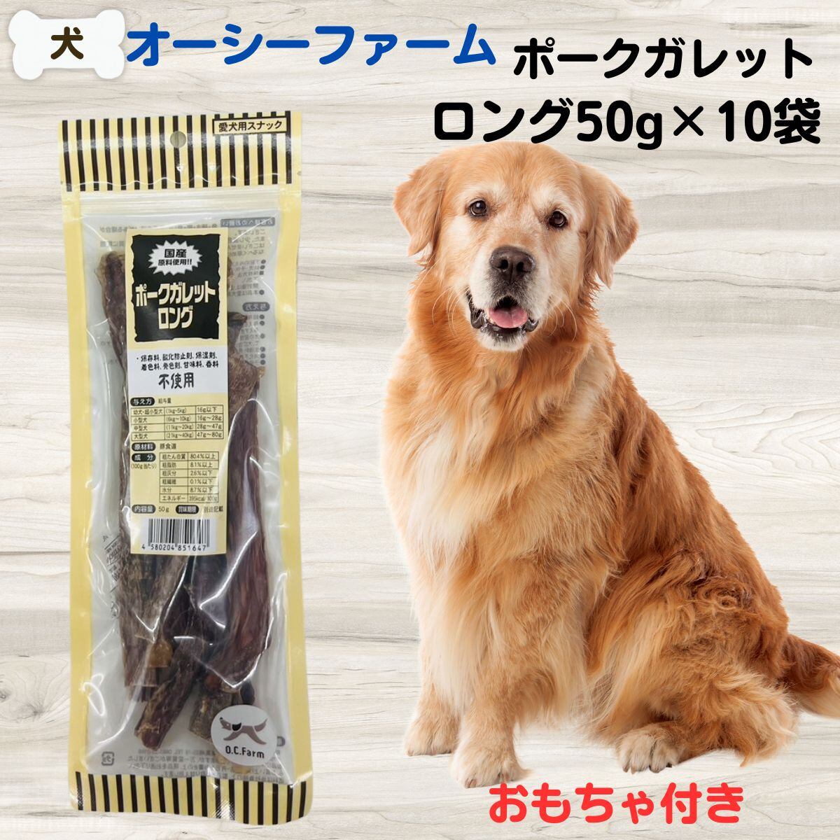犬 デンタル 犬 デンタルケア オーシーファーム ポークガレット ロング 50g×10袋 犬 ジャーキー 無添加 賞味期限2026年2月1日 4580204851647-10
